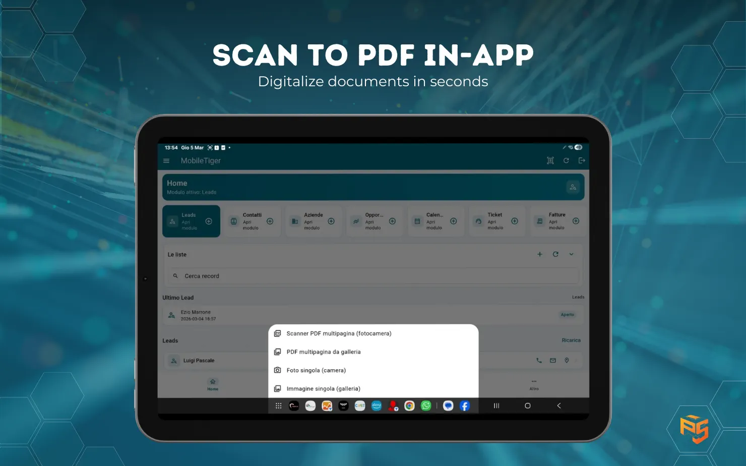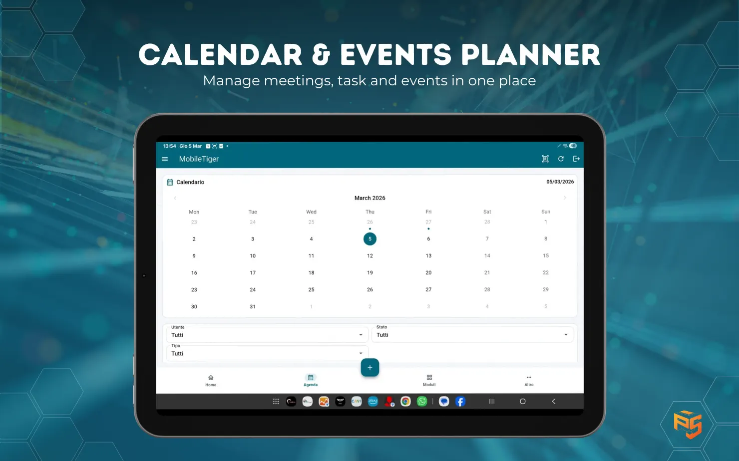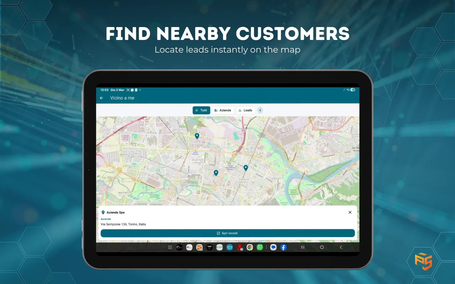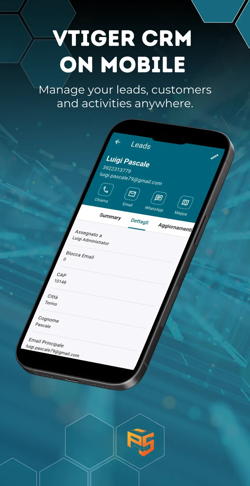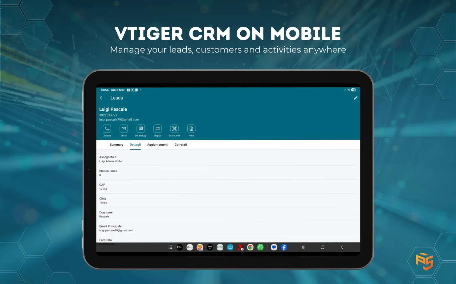 Client mobile indipendente per istanze vtiger (testato su 8.3). Moduli, agenda, one view record, quick actions e mappa "Vicino a me" in una sola app.
